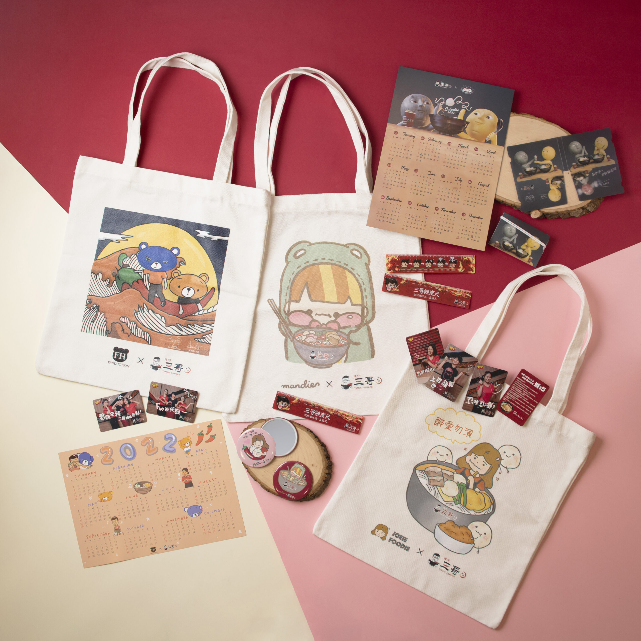 為回饋社會,譚仔三哥邀請到六位人氣本地插畫家包括:肥蛙、嘉盈@FHProductionHK、Santis@ FHProductionHK、Mr n Mrs Moon、麻甩女仔祖及Mr. Poop推出一系列限量三哥聯乘產品,當中的三哥隨身鏡、三哥2022年曆卡、三哥優惠券 (惠顧三餸米線減$5) 在現場免費派發;而三哥Tote Bag、三哥口罩套、三哥辣度尺更在手作市場的譚仔三哥攤位進行慈善義賣,將義賣所得全數捐贈聖雅各福群會FOOD-CO。是次市場活動豐富,人氣KOL包括肥蛙、蛙妹、嘉盈@FHProductionHK、Santis@FHProductionHK輪流作三哥饒館攤位駐場店長、兩位骨灰級三粉亦有展覽區,向三粉展示對三哥的「愛」:Samgor .lover地圖展及「為何中西區沒有譚仔三哥」狙擊展、可分拆食材的3D三哥米線打卡區、66張以「記憶嘅味道一直喺度」為主題的明信片展覽攤位、扭蛋區和一系列的遊戲專區,包括:譚仔三哥文憑考試、三粉運動會、三哥姐姐話Matching遊戲,和涵蓋各種遊戲包括擲彩虹/階磚,射擊台,籃球機、拋圈、沙袋等等的三哥遊戲區。